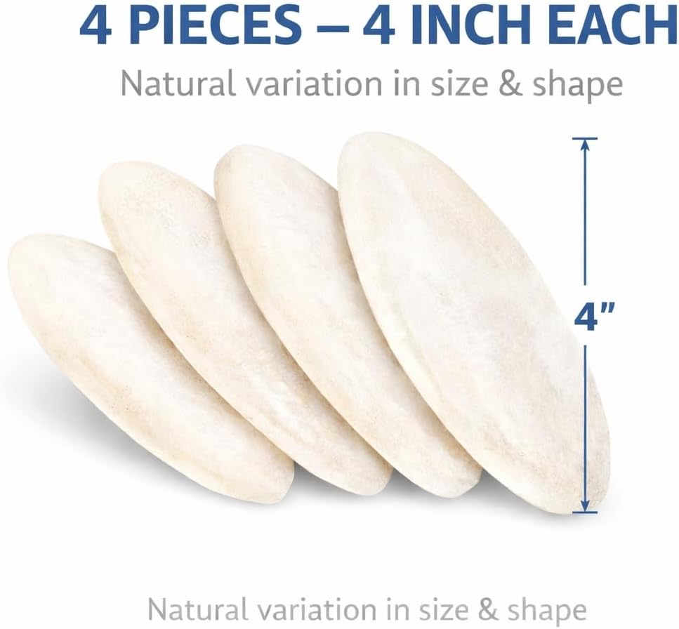 I order the 3.5-4” cuttlebones for my daughter’s aquarium to make sure her snails have hearty & healthy shells as they grow. These were well packaged, at least 4” in length if not more and reasonably priced. There’s no smell to the to them which is a plus. It was easy to break off a couple pieces and place them in her tank and it didn’t take long for them to soften up. They should last us awhile but I’ll definitely plan to buy again when we run out. I haven’t been able to find them in store near us, especially not all natural ones.