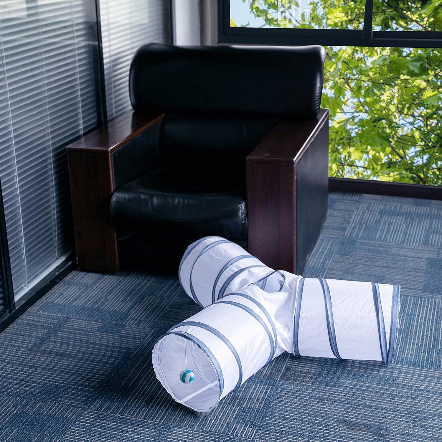 Features color: white & gray Item Dimensions: 38″ Diameter x 10″ Length Product Weight: 0.7 lb Package List: 1 x 3-Way Cat Tunnel