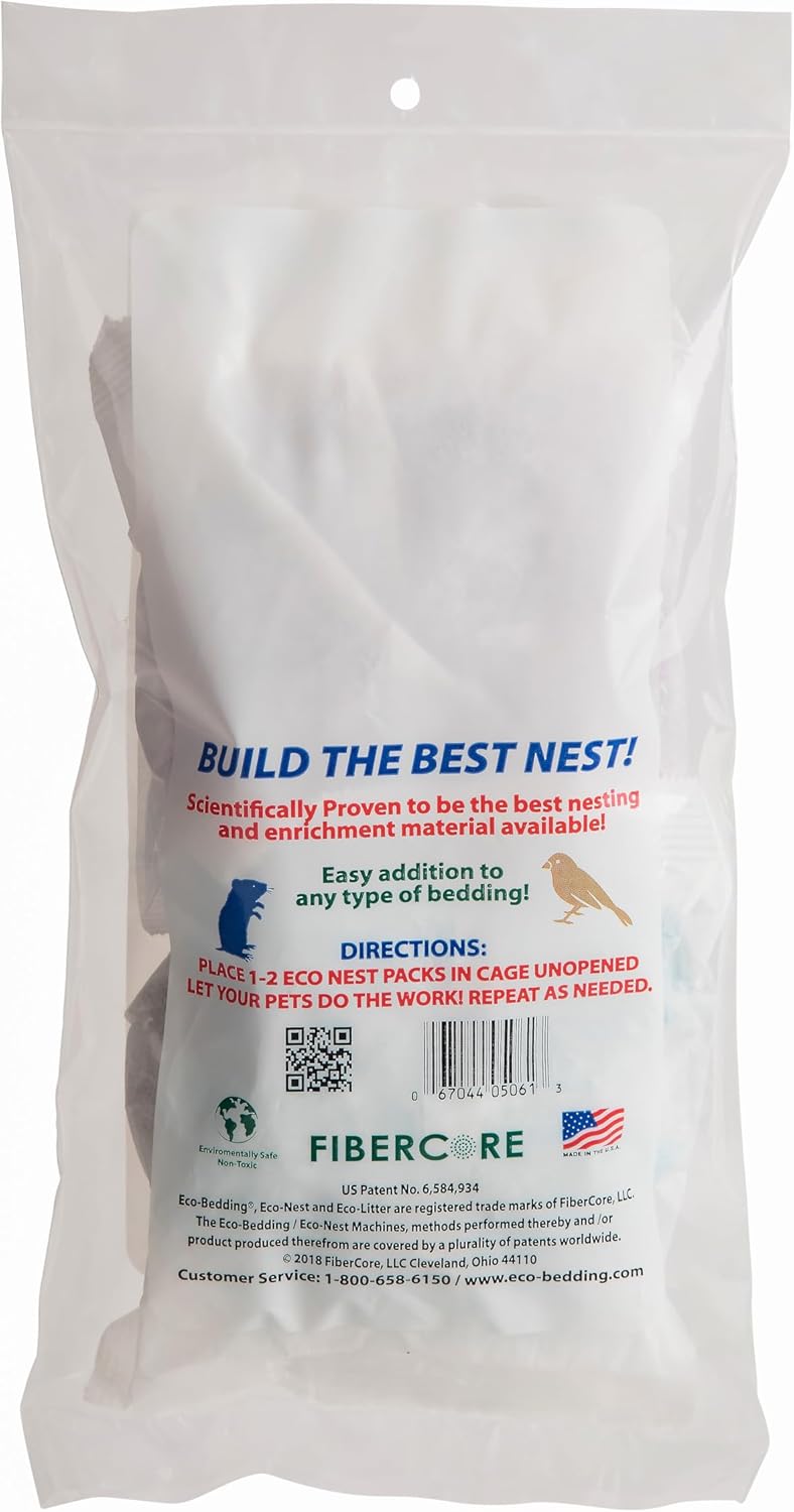 – Create your pet’s best nest with FiberCore Eco Bedding for small animals and birds. Made of recycled stock paper and free of chemicals, our pet-friendly material uses food-grade, colorfast dye that won’t stain or run. A little goes a long way to line your furry friend’s home, whether it’s a cage or breeding space. Cozy, comfy, and clean, the dust-free and absorbent bedding is a great alternative to hay, straw, wood chips, or pellets. It’s highly absorbent to help prevent bad odor, and cleanup is easy. You can also spot clean, and the soiled paper doesn’t stick. Enjoy a fresher house for yourself and your pet. In addition to providing a soft liner for tiny feet, this bedding helps promote enrichment. The interlocking crinkle paper encourages natural animal activities such as foraging, burrowing, nesting, and play. Use it for rodents, rabbits, birds, and puppies in homes, pet shops, and veterinarian offices. Place 1-2 Eco Nest Packs in cage unopened and let your pets do the work! Encourages nesting, foraging, and fun! – Eco Bedding is Forest Stewardship Council Certified*, made in the USA, and packed with care through the help of a remarkable group of adults with disabilities in Northeast Ohio.