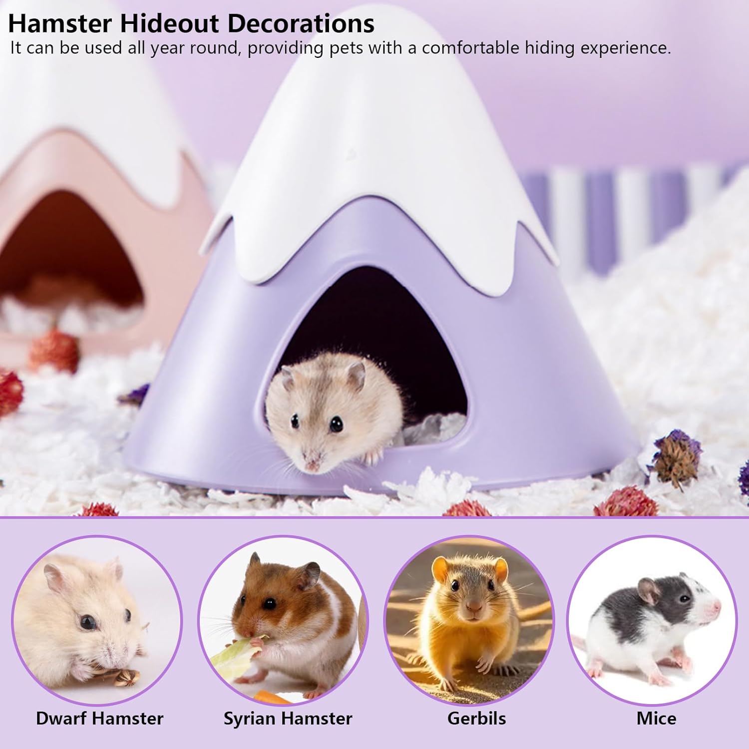 Hamster Hideout, Snowy Mountain Shape Hamster Hide House,Cute Small Animal Habitat Hideaway Hut for Syrian Hamsters, Mice, Gerbils, Rats (Purple)