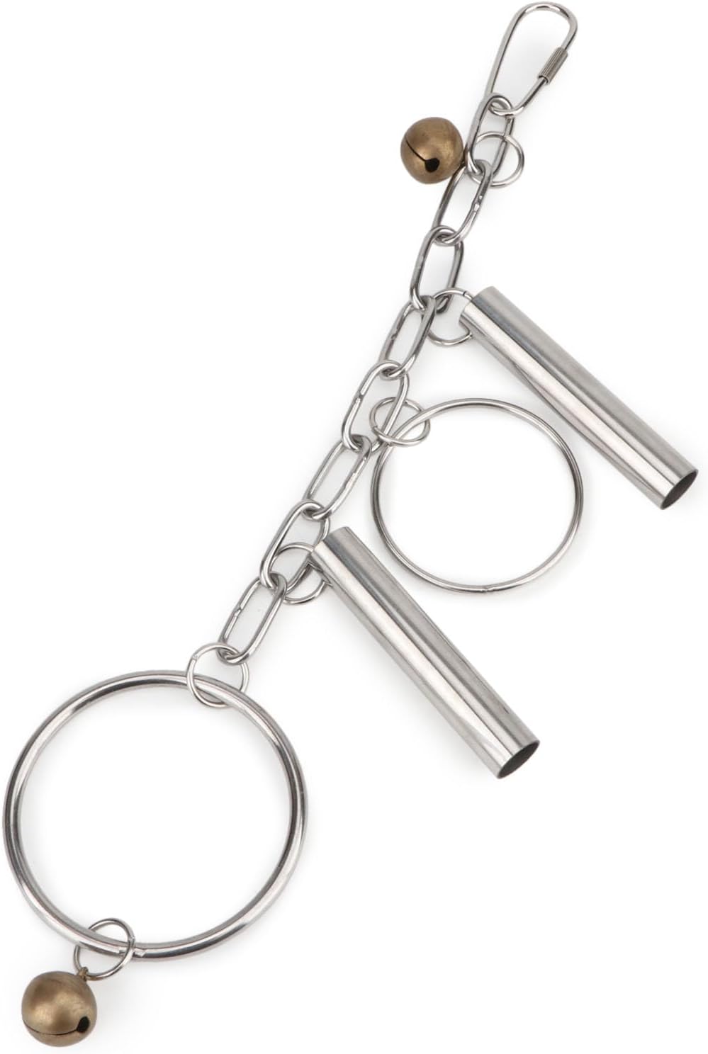 Hypeety Stainless Steel Bird Bell Toys Heavy Duty Hanging Spoons Rings Safe Metal Cage Hanging Bells Toy for Cockatoos Macaws African Grey Large Parrots and Birds (Bells+Rings)