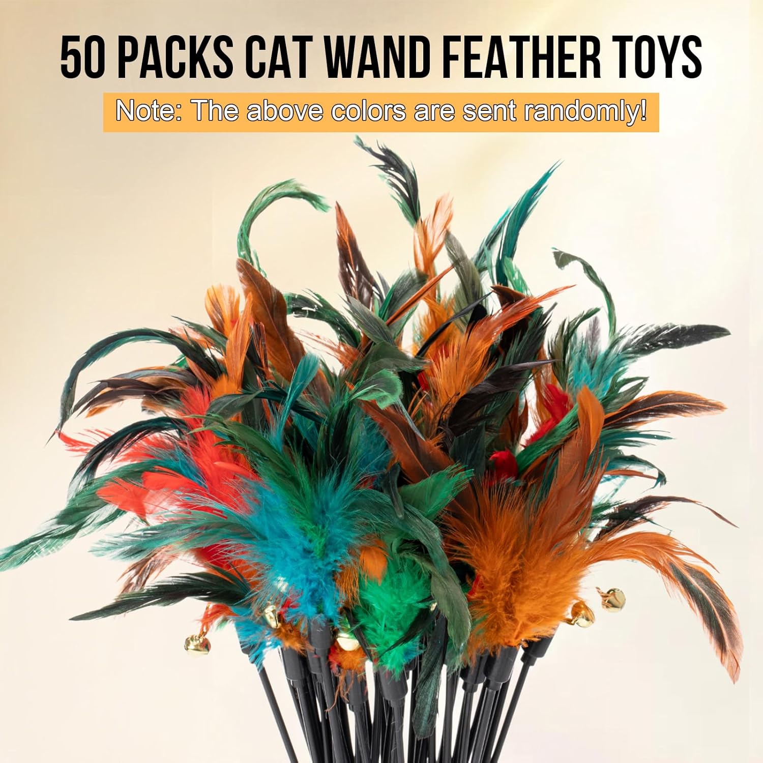 Generous 50 Pack Set: never run out of fun with the package of 50 cat feather toys; This comprehensive set ensures that you always have a cat feather wand on hand for spontaneous play, providing continuous entertainment for your beloved pet