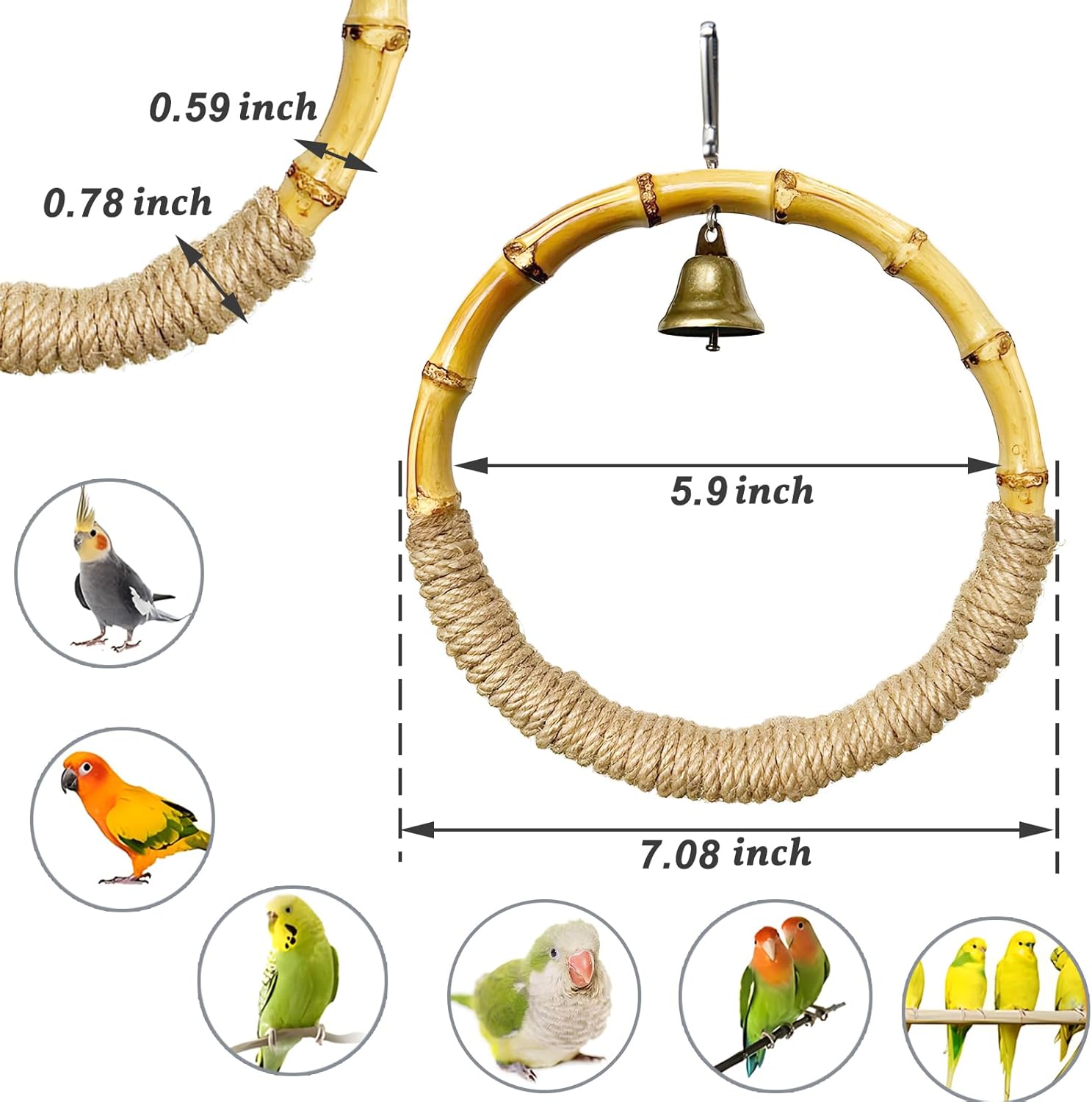 8 reviews for Natural Wood Bird Swing Toy for Parakeets, Sturdy Bird Perches for Cage Hemp Rope Swing, Parakeet Toys Climbing Chewing Perch Stand for Parrot, Budgies, Cockatiels, Conures (Bamboo, M)
