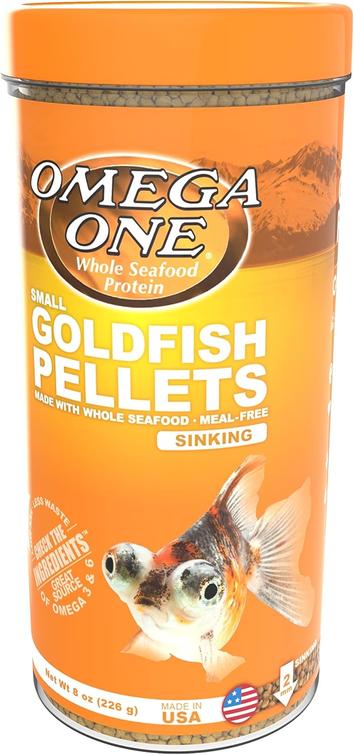 FOR SENSITIVE SYSTEMS: Omega One Goldfish Pellets are formulated specifically for the sensitive goldfish digestive system. They are 100% meal free and contain significantly less starch than other goldfish foods