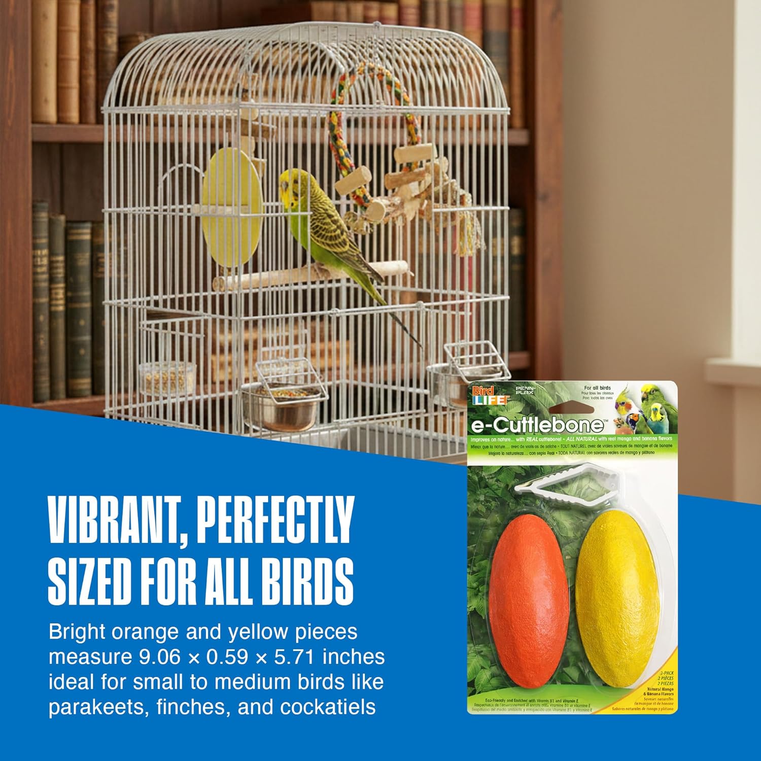 Mango & Banana Flavor Variety – Each E-Cuttlebone is infused with Omega 3 fatty acids and Vitamin B1, promoting balanced energy and vibrant plumage. The tropical flavor combo of Mango and Banana keeps your bird active and curious while adding variety to its daily routine.