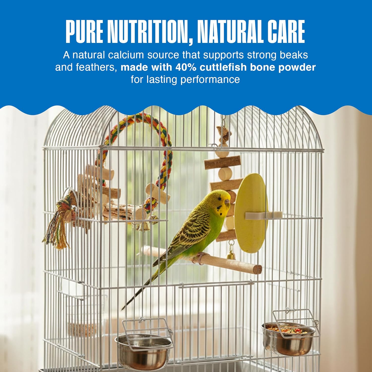 Furthermore, to help prevent Cuttlefish population from becoming decimated, this product is made with 40% cuttlebone.