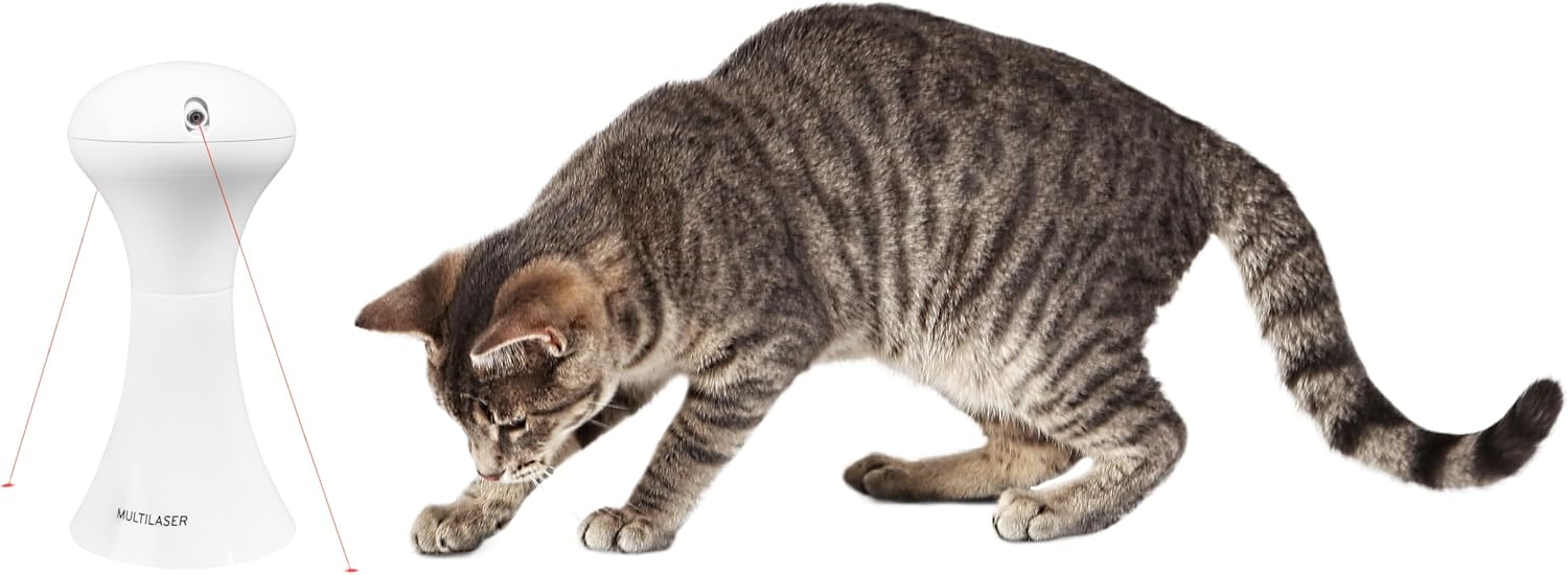 Hands-free play with 2 rotating lasers to encourage your cat to chase and pounce