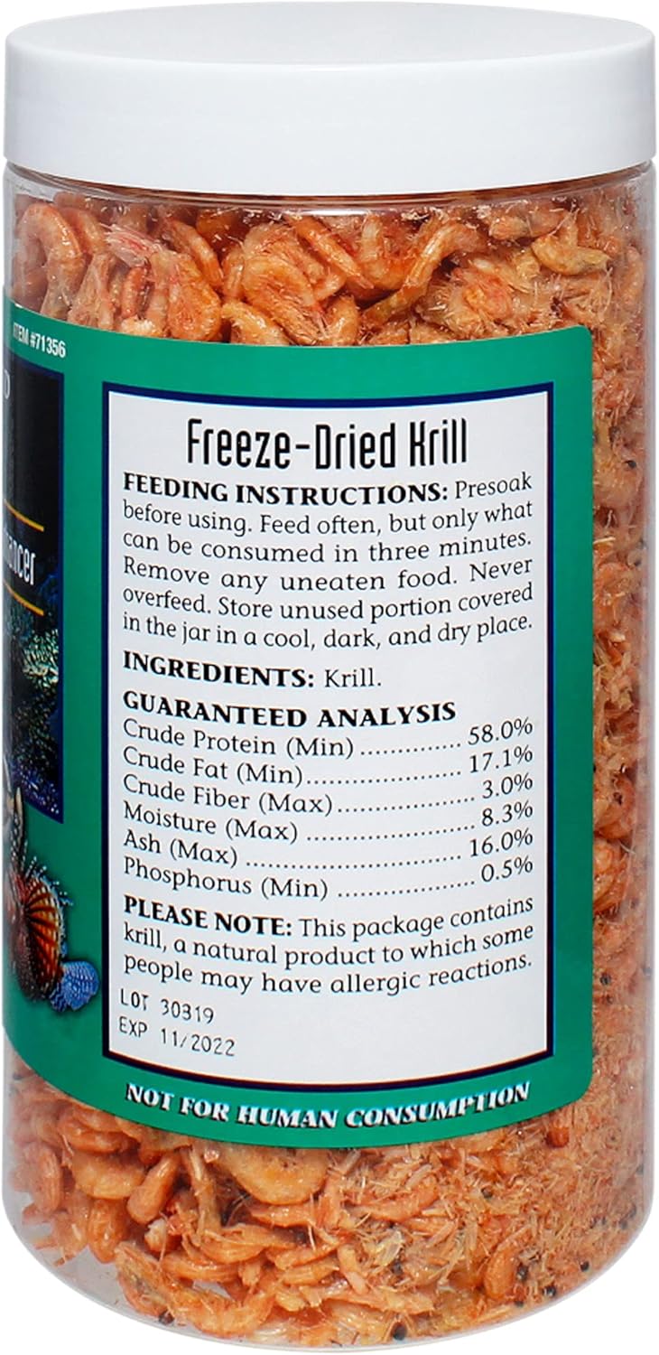 The price is right and the product is great quality. The krill are not crushed or broken. They just look alot better than other brands. I soak mine in a vitamin supplement before i feed to my fish. It makes them soft and easier to eat in my opinion