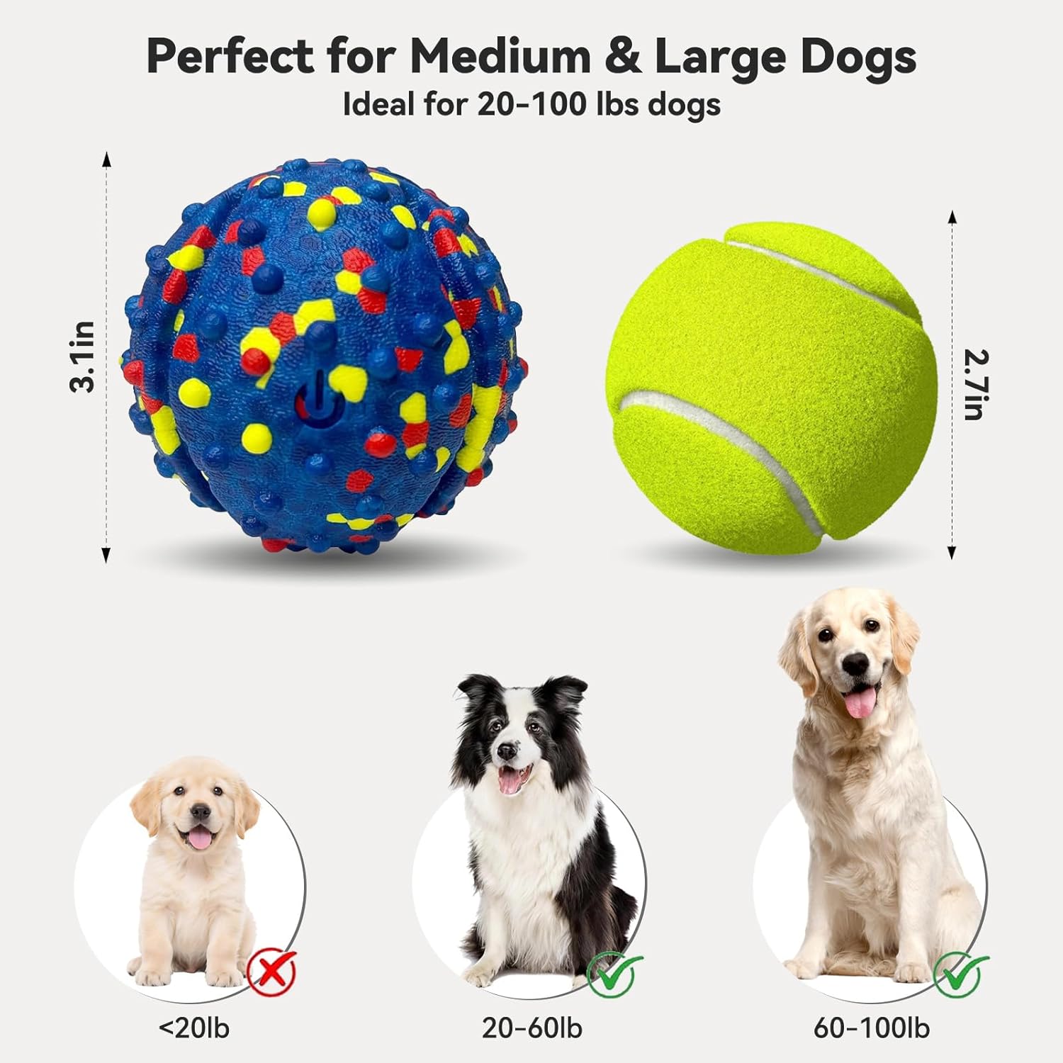 Ideal for Medium-Large Dogs: Smart interactive dog toys for large dogs is designed with a diameter of 3.1 inches and is perfectly sized for medium and large dogs. Supervise play and guide proper interaction to prevent chewing, while strengthening the bond between you and your dog.