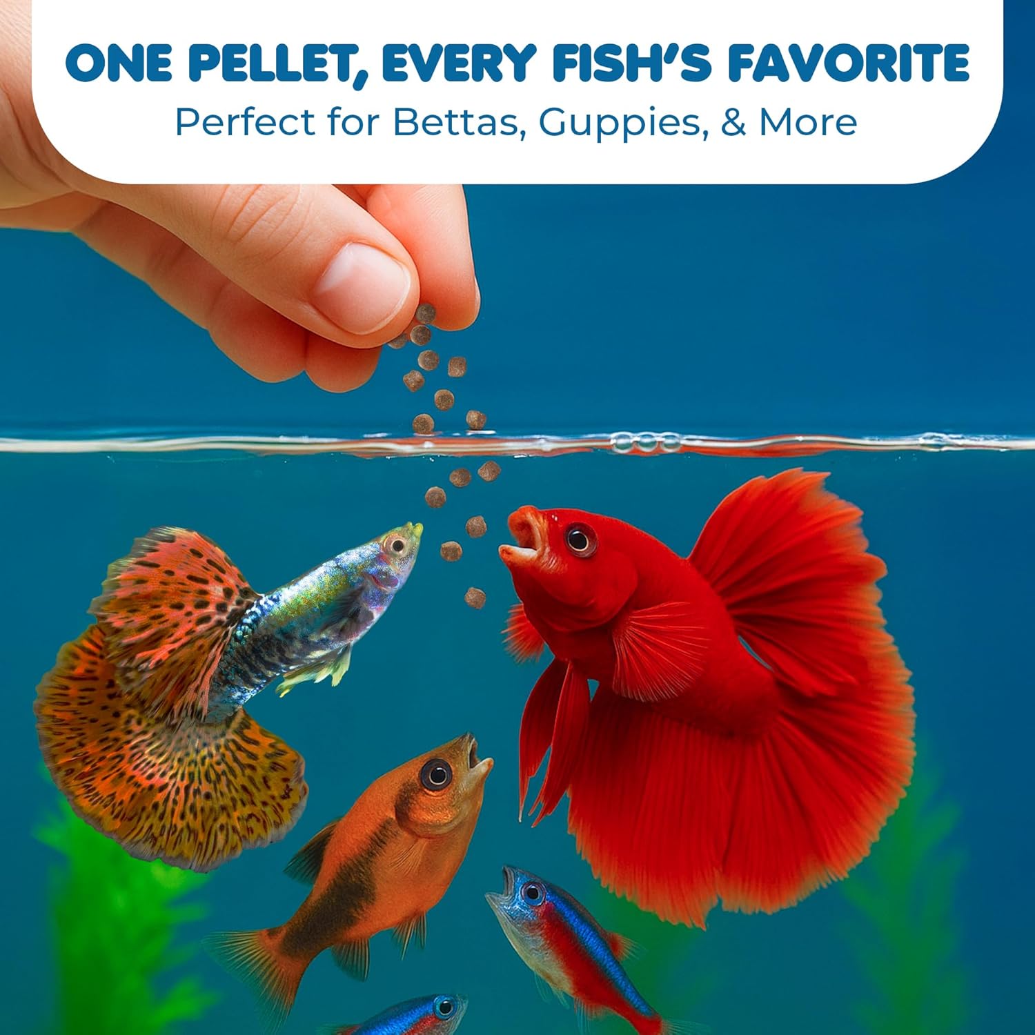 The optimal blend of ingredients in our Fish Food provides a balanced daily diet of essential amino and fatty acids needed for growth and multiplication. For community fish, our pellets are fine for daily feedings, twice a day. The small food is just the right size for bettas, goldfish, guppies, mollies, platies, swordtails, and other livebearers. Feed them two times daily, or only as much as your fish can consume within three minutes.