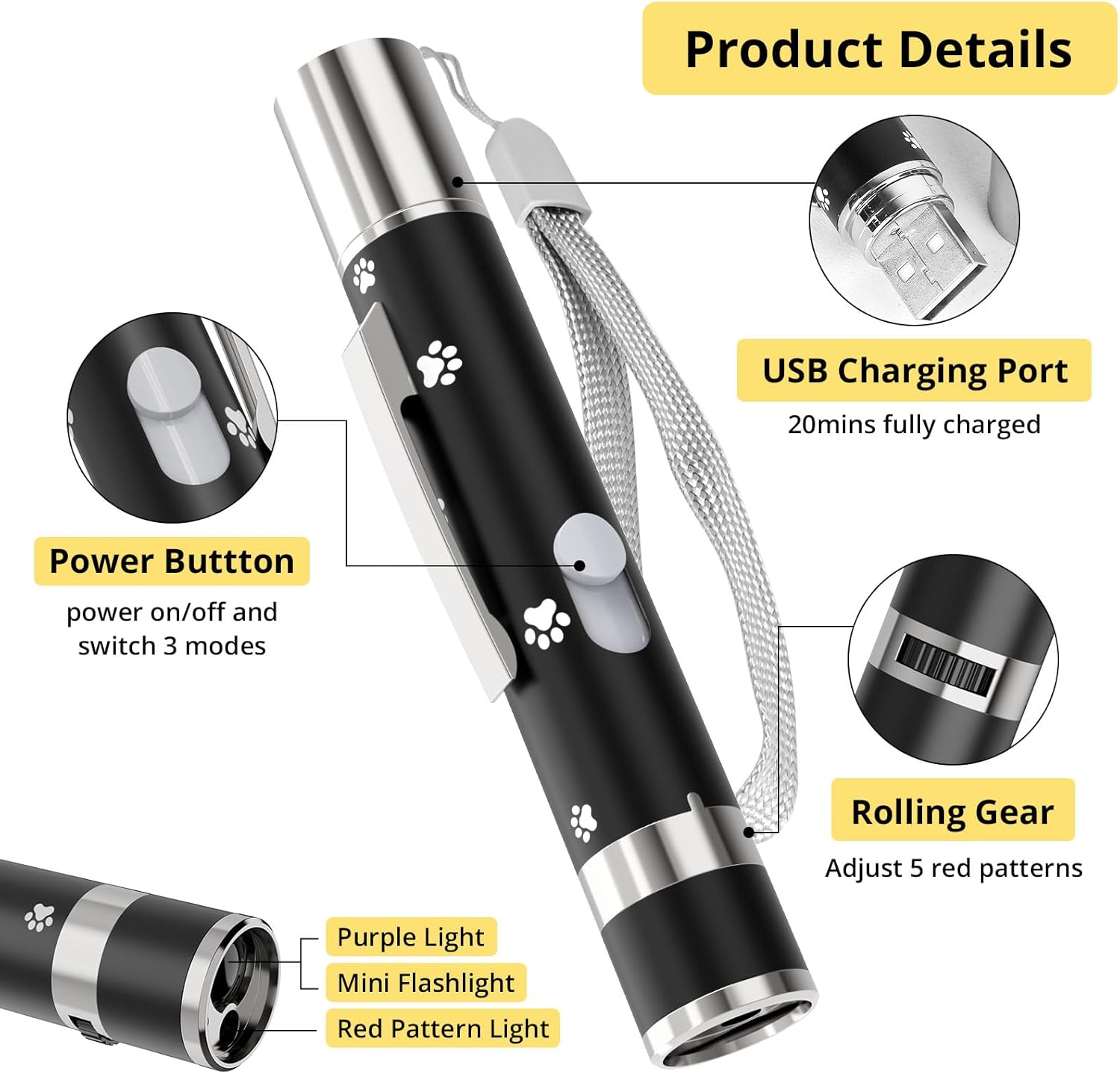 【Durable Metal Casing with Paw Print – Superior to Plastic Toys】Our cat toy features a sturdy metal casing (vs. flimsy plastic) with scratch-resistant finish and paw print design. Shockproof & drop-resistant for rough play, lightweight yet solid for comfortable handling.