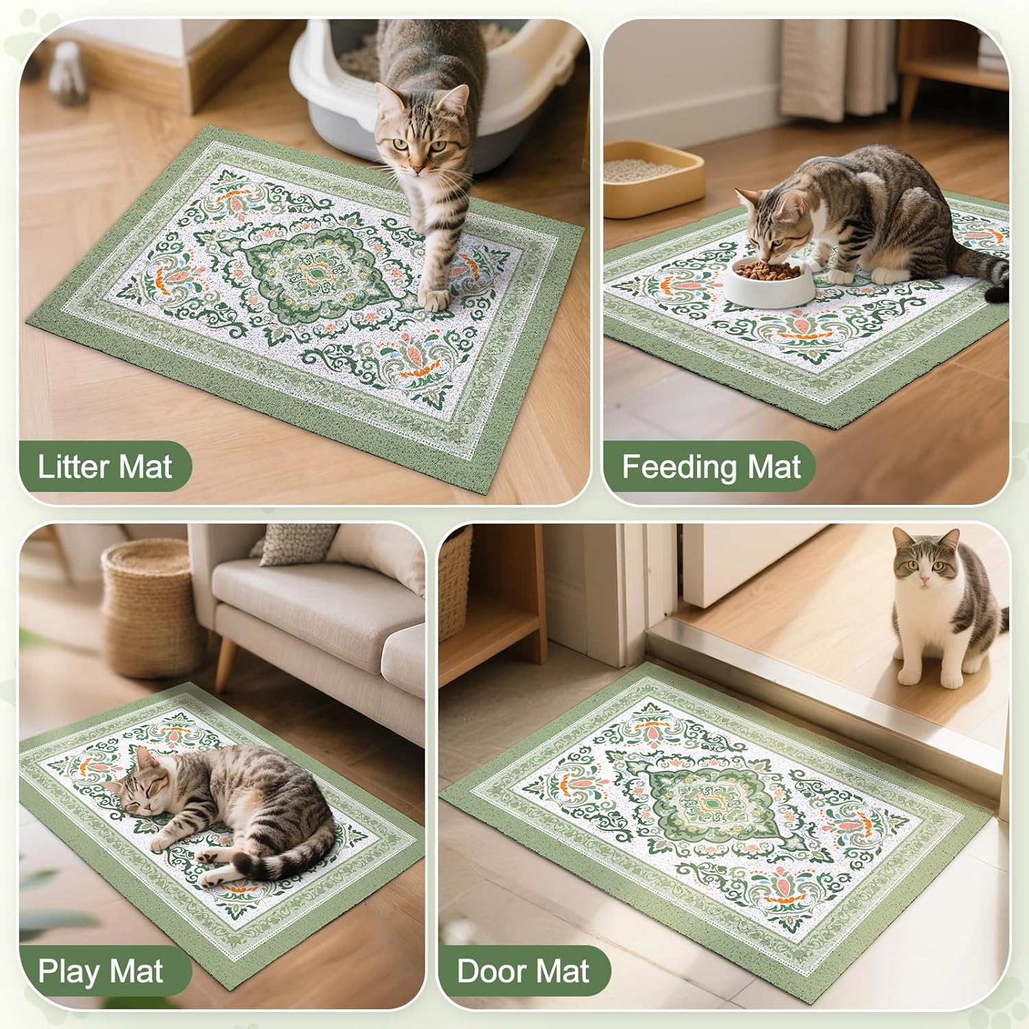 Multi-Use Mat: Featuring unique pattern designs, the pet mat adds a decorative touch to any home decor style; Available in multiple sizes (e.g., 24X15in, 33X22in, 40X30in), it doubles as a pet feeding mat or other mat , making it a versatile addition to kitchens, or litter box areas
