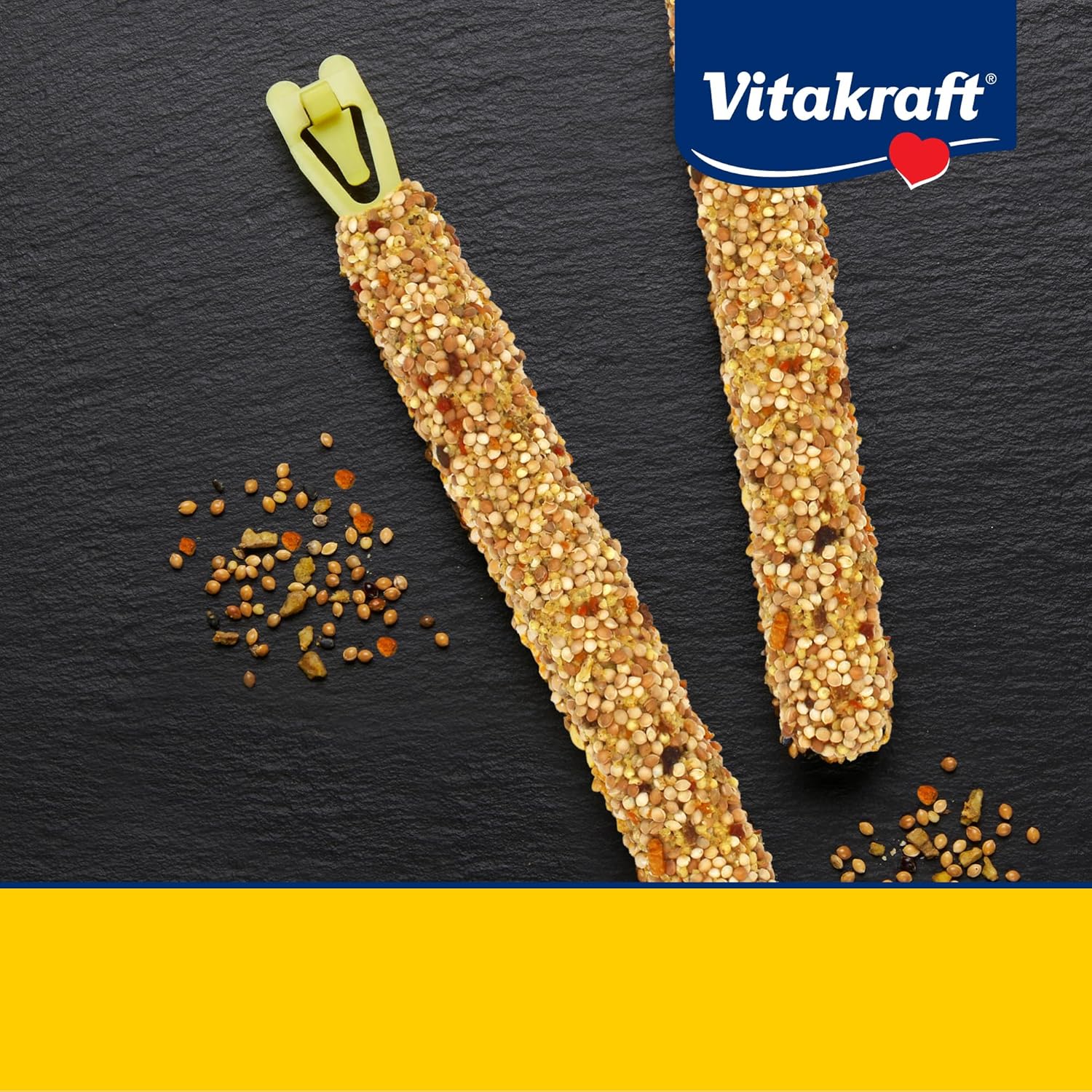Vitakraft Crunch Sticks Parakeet Treat – 2 Sticks in Orange and Apricot Flavor – Triple Baked with Natural Wood Center – Added Vitamins and Minerals with Cage Clip Holder for Long-Lasting Enrichment